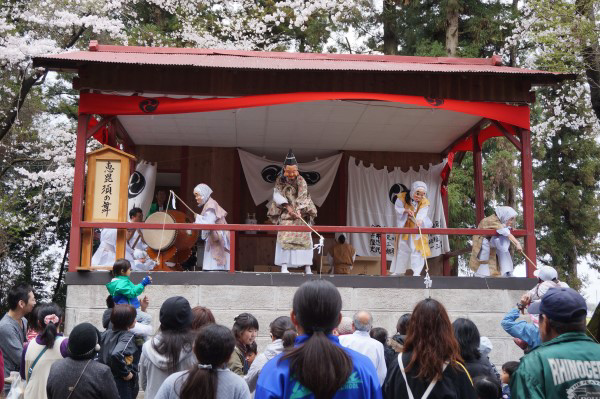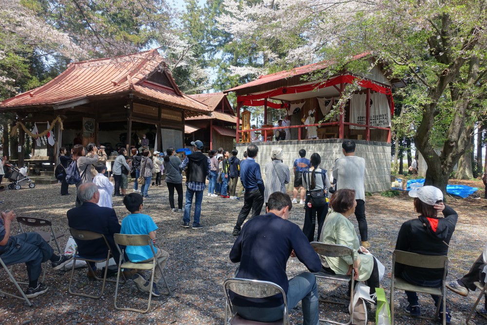 晴れの天候の下、橋本神社の祈年祭が執り行われました。太々神楽も通常演目の半分ほどが奉納されました。多くの方々が見物にお越しになり、賑やかさが少しばかり戻ってきました。