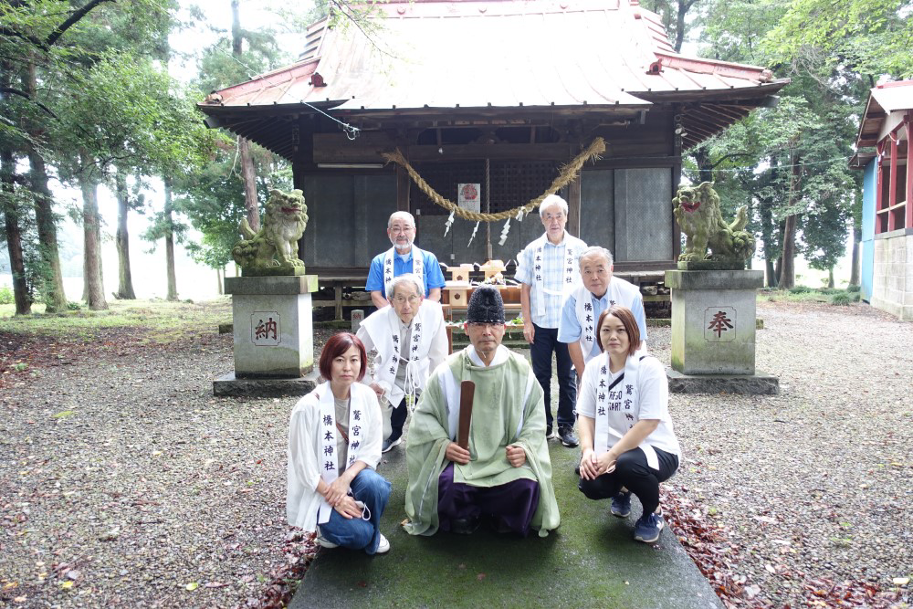 - 明治35年9月28日の大暴風雨(足尾台風)により、橋本集落内に鎮座していた字天神の天満宮、字館の内の神明宮、愛宕神社、稲荷神社、神明宮、字鷲宮の八坂神社、稲荷神社、大杉神社、諏訪神社、雷電神社、猿田彦神社以上11社の社殿並びに立木が倒破したため、同年11月中に氏子一同が協議を行い字鷲宮の現在地へ合祀することが決定され、明治37年に拝殿、幣殿、本殿等が新築され、橋本神社が創始された。
