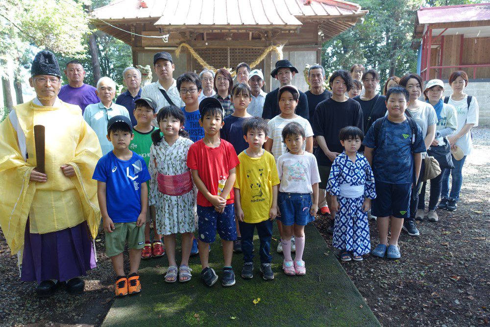 コロナがようやく静まってきて、これだけの人々が集まり、子ども達が境内をかけっこしてはしゃぐ賑やかな夏の祭りとなりました。子ども神輿を社殿の前に据えるのは、令和元年以来4年ぶりのことです。今回の渡御は境内に限られましたが、来年は橋本の集落内を回れるといいですね。