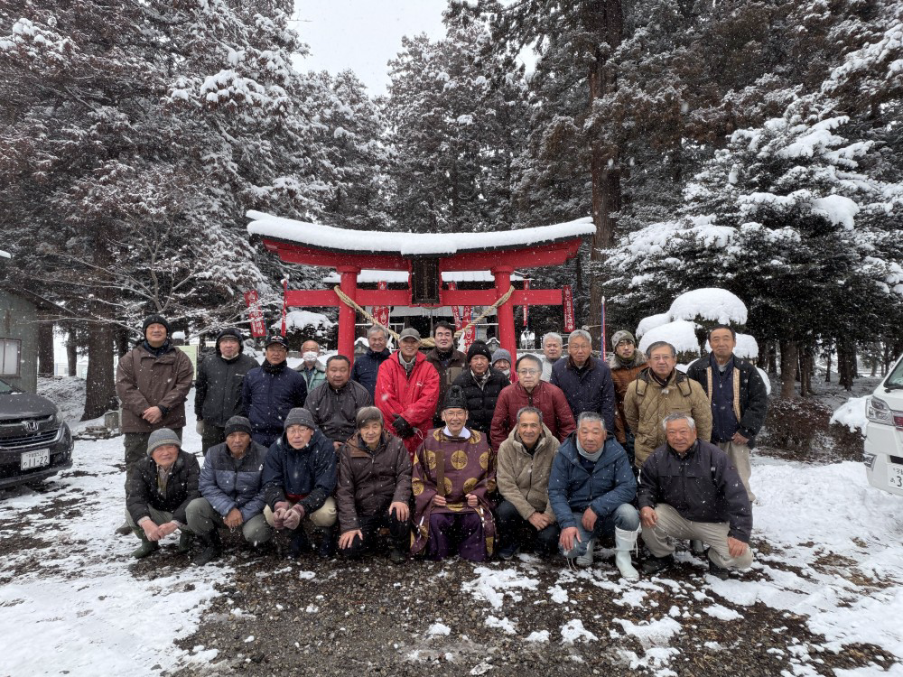 珍しく雪となったこの日、笹原の稲荷神社において初午・祈年祭が執り行われました。白い雪が辺りを覆う清らかな雰囲気の中での祈年祭は何十年ぶりでしょうか、確かな記憶がありません。神事では今年の米を始めとする五穀豊穣、産業繁栄を祈りました。その後社務所で賑やかな直会が行われました。