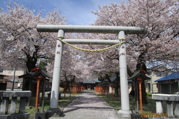 桜の時期には、参道両側の満開の桜が見事です。どうぞご参拝下さい。
