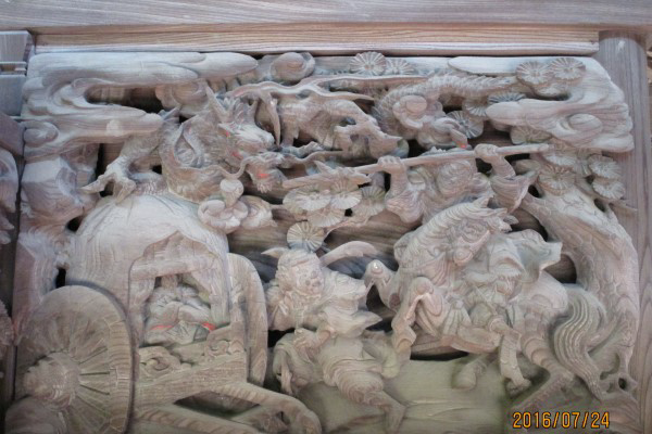 古代中国の周の武王が殷の紂王を落陽城に討ったとき、殷の武将である方相武が武王を討ち取らんとして車前に斬り込み、その鉾先に武王の運命も尽き果てたかと思われた時、突如として上空より金龍が現れて武王の危急を救った場面です。